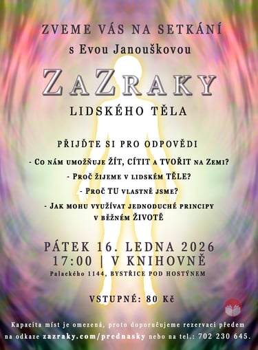 Objednejte si přednášku s Evou Janouškovou nabízející inspirativní vhled o smyslu života, fungování lidského těla a jeho nevyužitých možností.